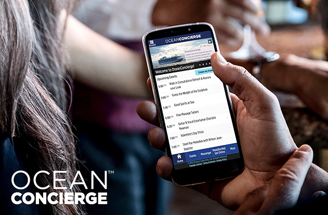 Utilice el Ocean Concierge como su funte de información a la que acudir en caso de que desee planear alguna actividad, eventos, comprobar el menú de los restaurantes o ver el itinerario del crucero.