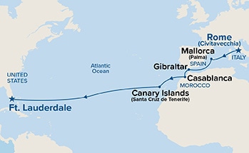 7 puertos de Civitavecchia (Roma) a Fort Lauderdale (Miami)